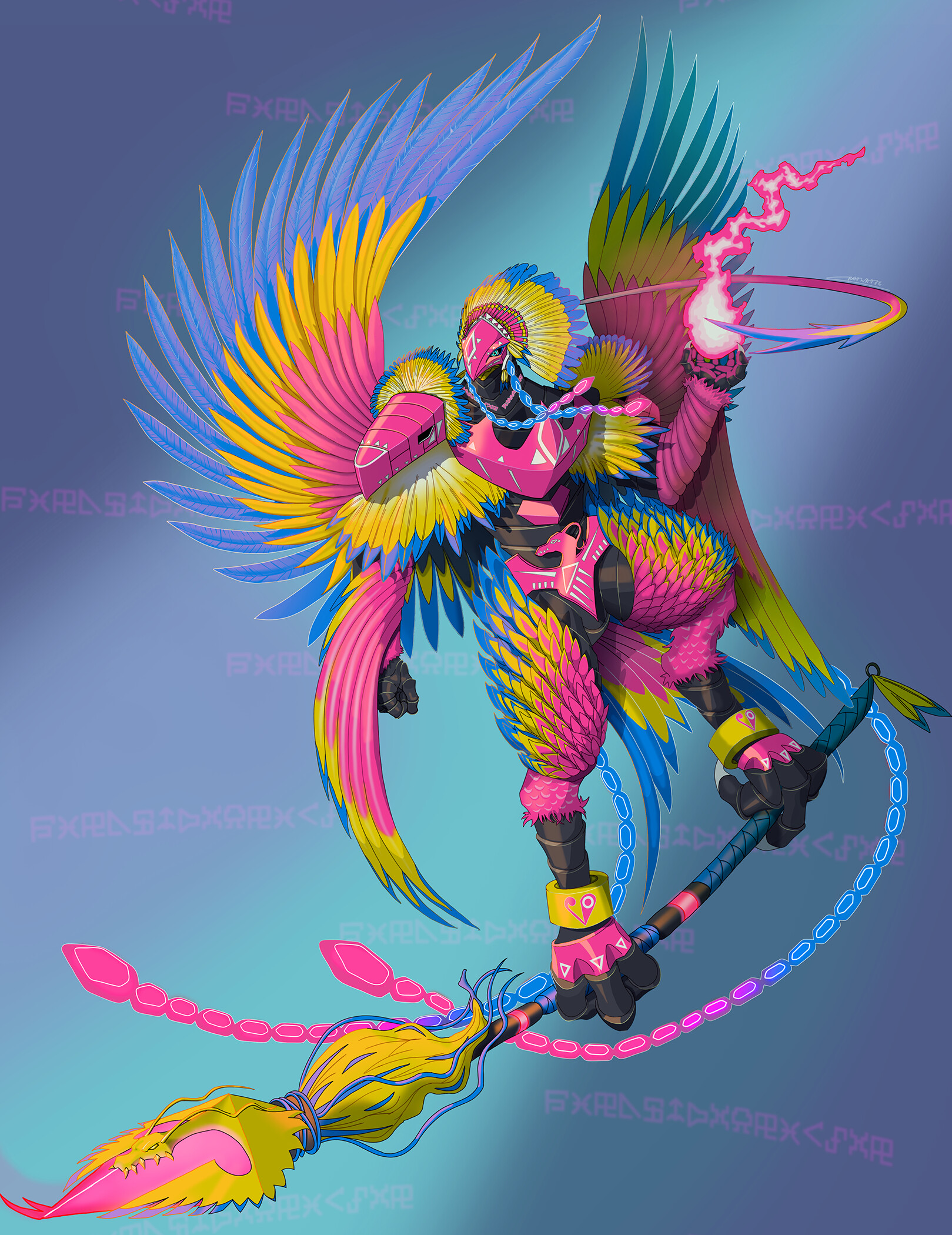 I found another artist's representation which is also quite heavily detailed, and thus doesn't fit either of the 2 target styles (despite being incredibly cool), and that is the art by @chunkylowdraws: