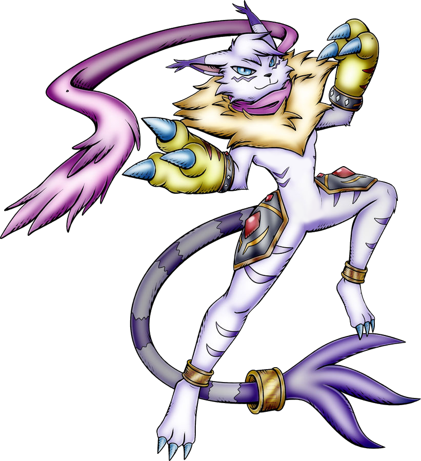 The first one is my (minimal) edit of @nerrax's Rakshamon, which he imagined as a "biomerge" evolution of Tailmon and Hikari Yagami: